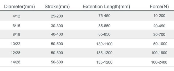 Stroke range: 25 to 500mm.